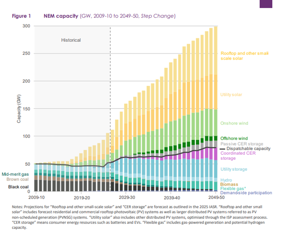 Australia’s energy market operator has said 120GW of grid-scale renewables and new dispatchable storage are needed by 2050 to meet a near doubling of electricity demand and deliver on government emissions and renewable energy targets.