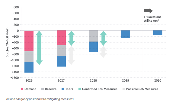 Published on 26 February, looks at the balance between electricity demand and supply in Ireland over 10 years. It found that from 2026 to 2028 the system is outside of the Reliability Standard of 3 hours, meaning additional capacity is required.