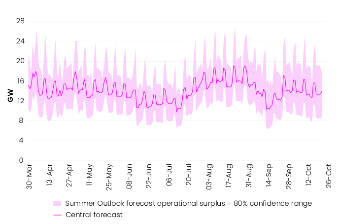 Peak demand is expected to be comparable to last summer, as increases in underlying demand are expected to be offset by growth in embedded generation. The growing battery storage fleet is also expected to provide significant within-day flexibility.